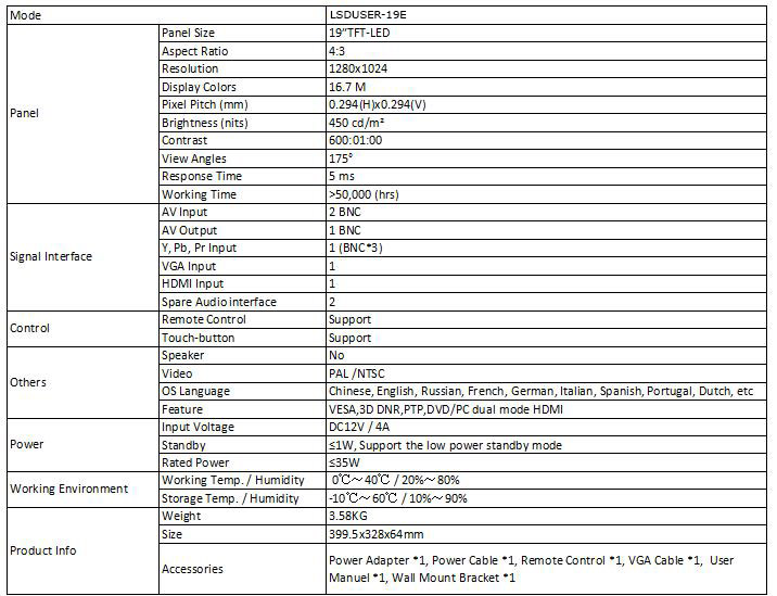 LSDUSER 19" CCTV Monitor (Model: LSDUSER-19E)