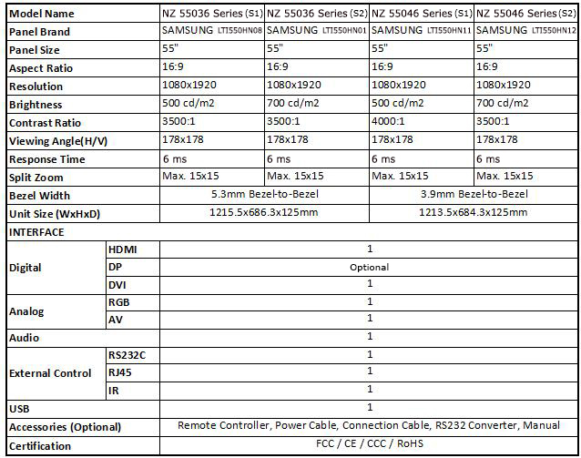 LSDUSER 55" Video Wall (Model: NZ 55036 SERIES (S1))