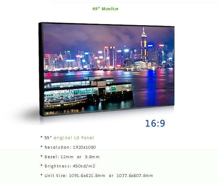- Material: 49" original LG Panel | 12mm Bezel | 500cd/m2 Brightness