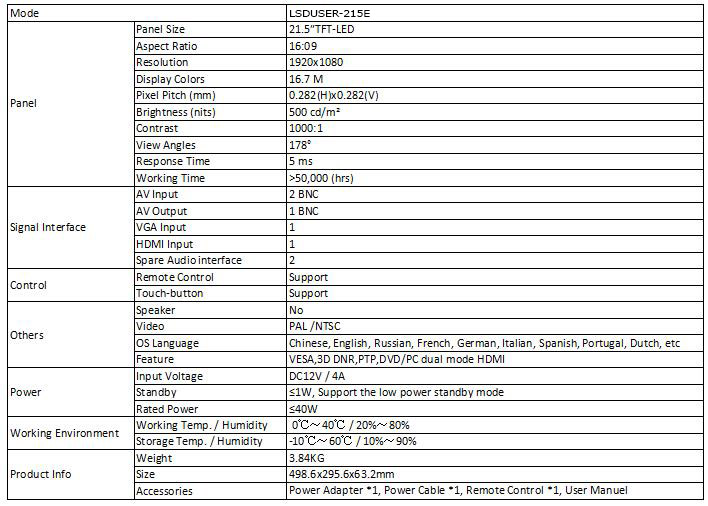 LSDUSER 21.5" CCTV Monitor (Model: LSDUSER-215E)